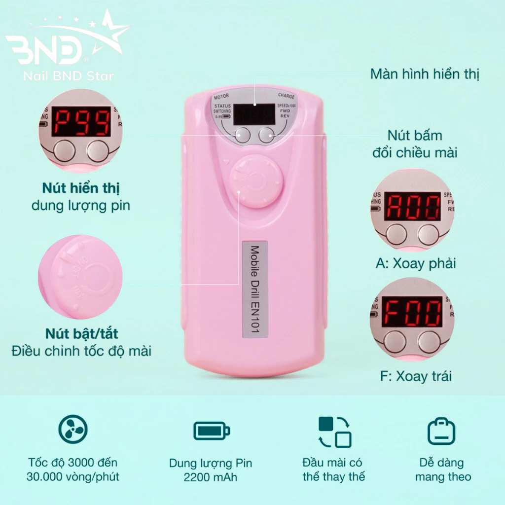 Máy mài móng tích điện EN101 hàng chuẩn – Máy mài móng cầm tay chuyên dụng trong ngành nail