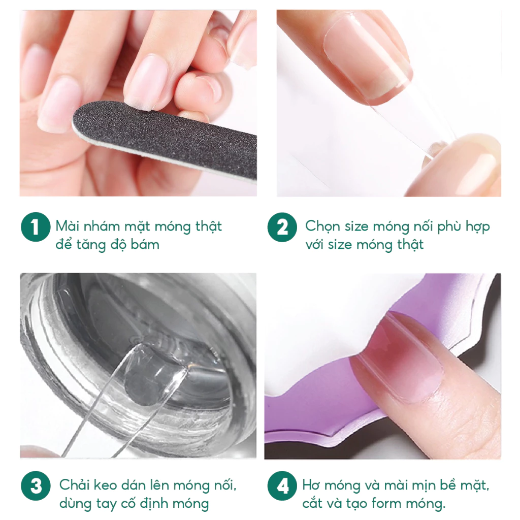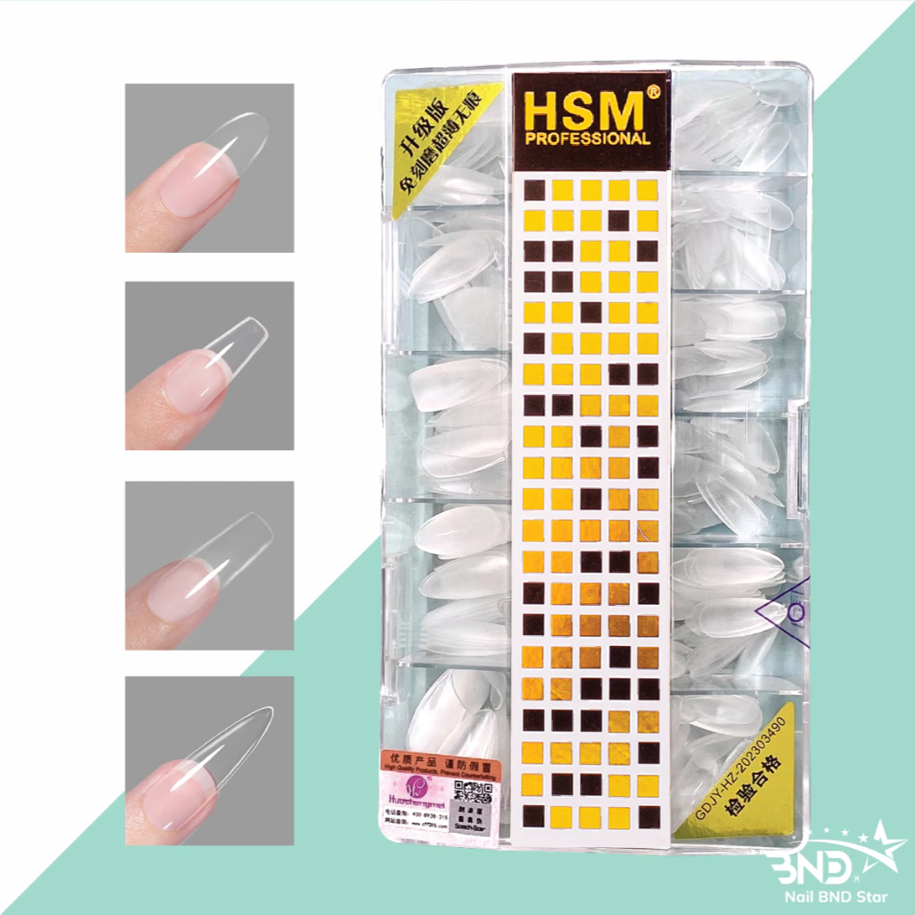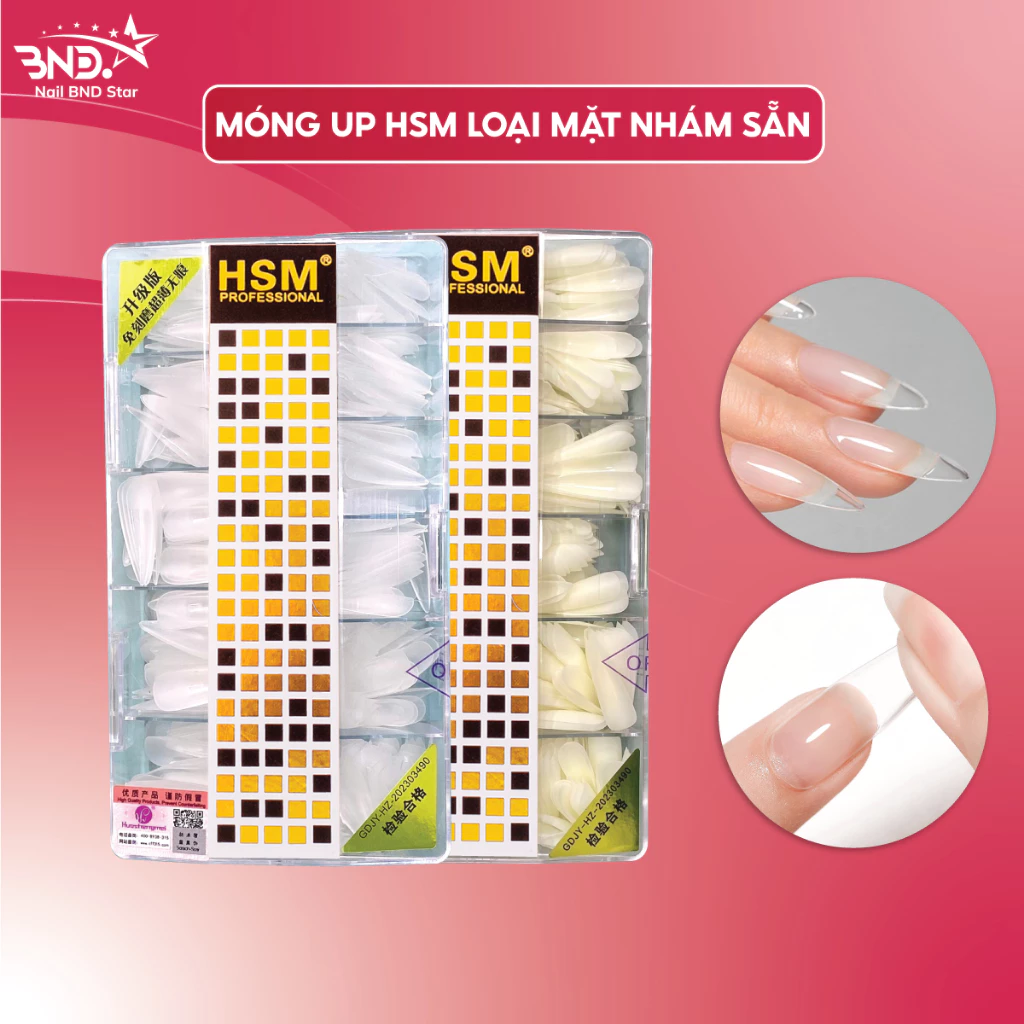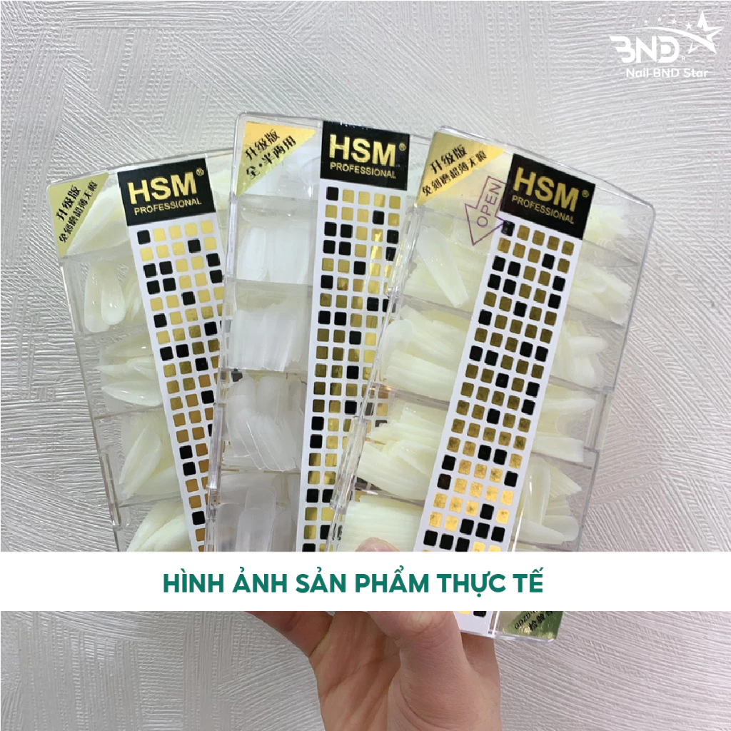 Móng up HSM loại mặt nhám sẵn – Hộp 500 móng ốp đủ size từ 0-9 đủ phom thang, vuông, nhọn, tròn nhọn