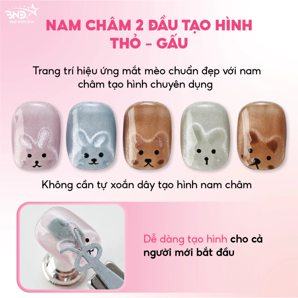 Nam châm hơ mắt mèo trái tim, gấu, thỏ – Thanh nam châm hút mắt mèo chuyên dụng làm nail Nailbndstar