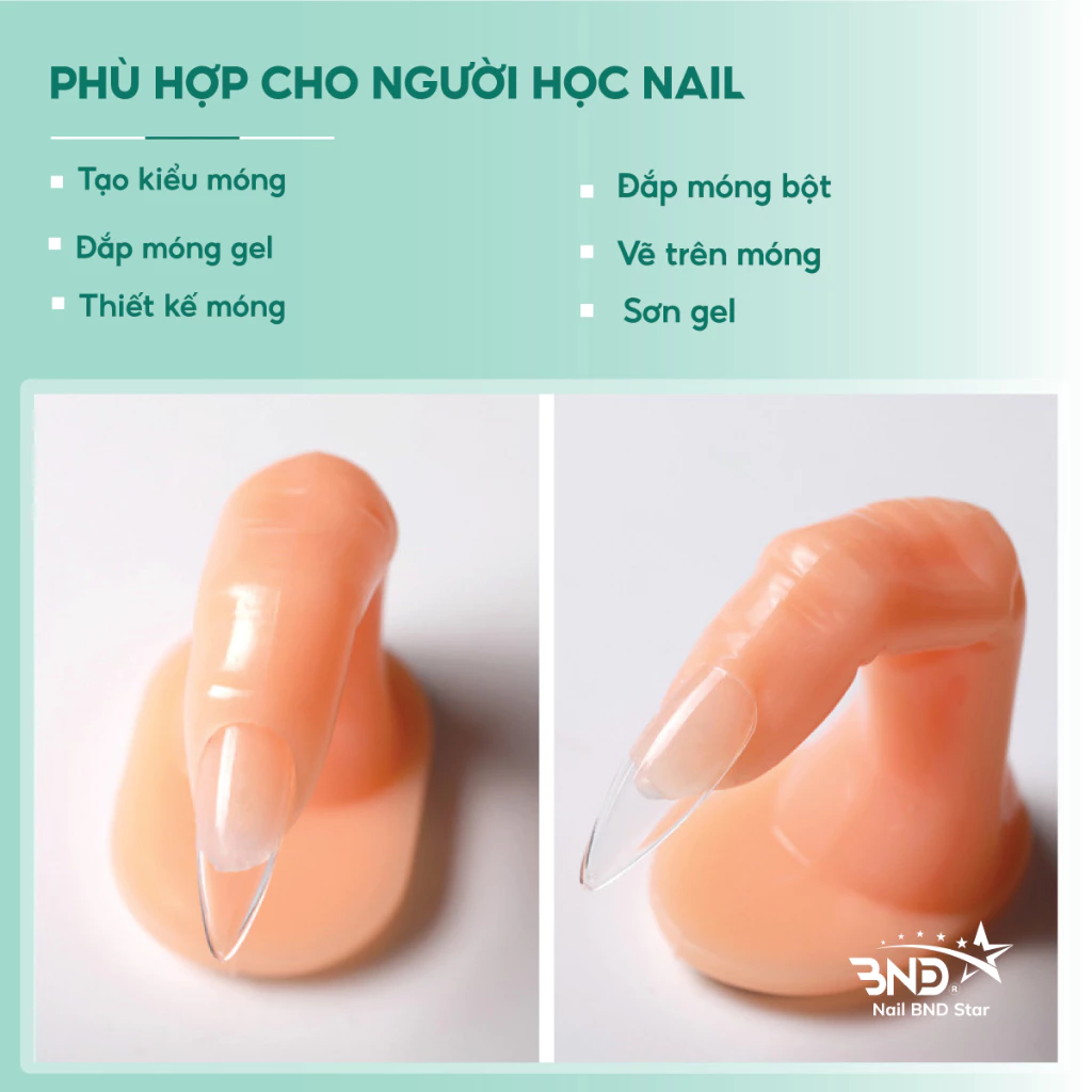 Ngón tay giả được thiết kế mô phỏng hình dạng giống hệt ngón tay thật, bề mặt móng thích hợp với mọi size móng giả, kích thước nhỏ gọn, không chiếm nhiều diện tích hộp đồ nghề của bạn.