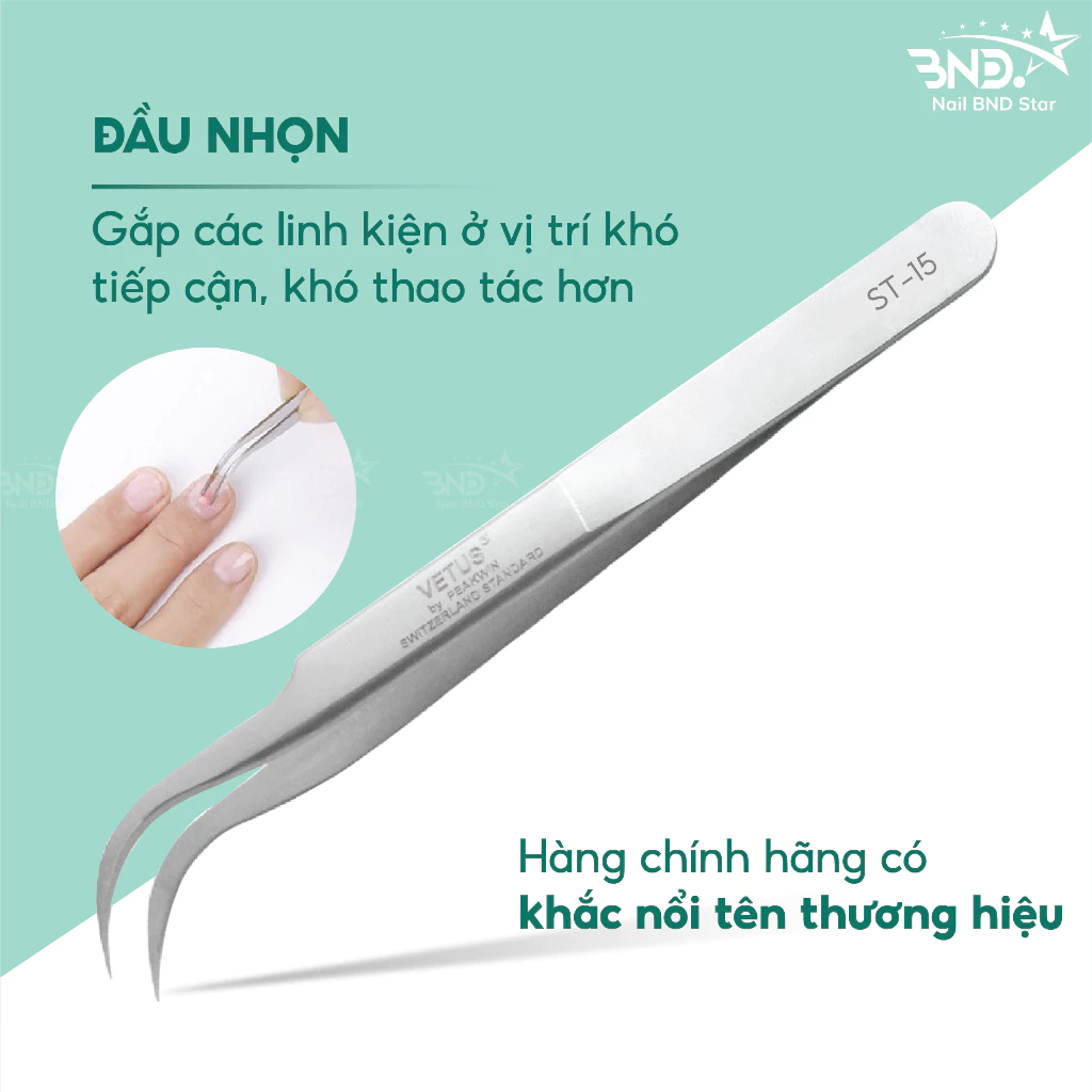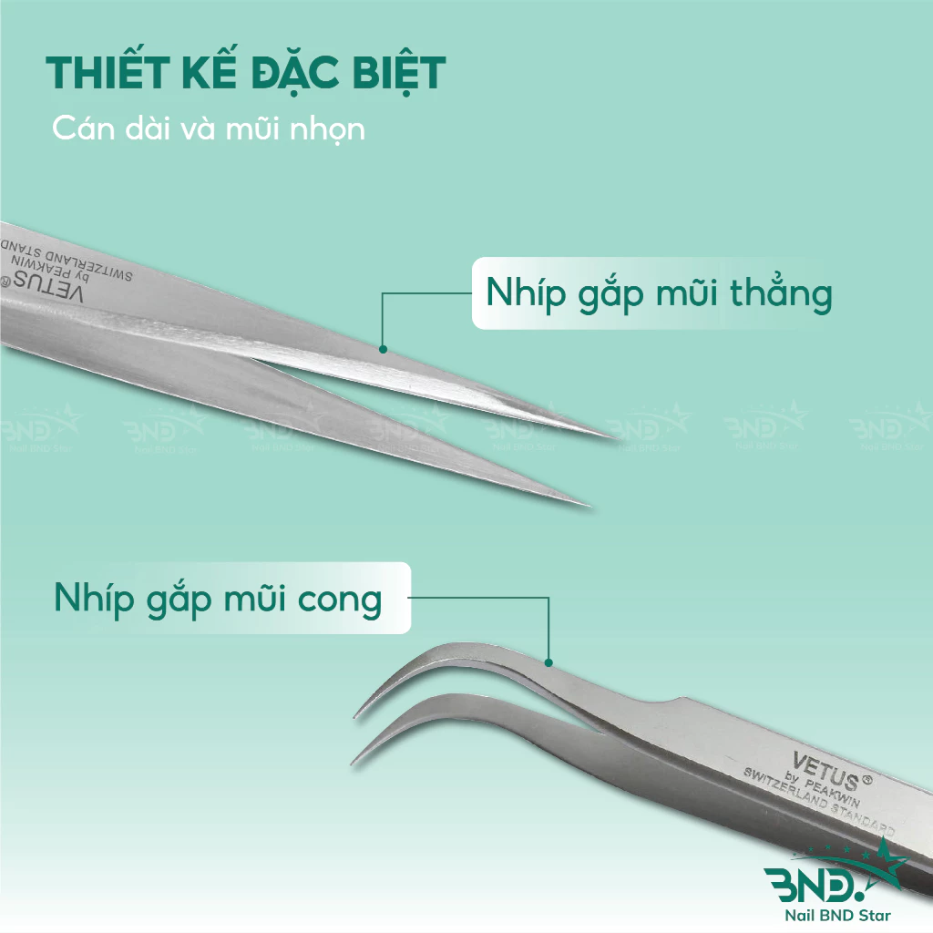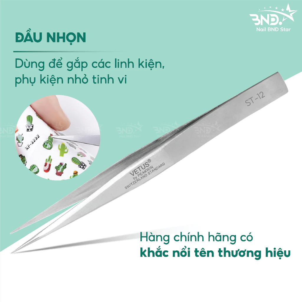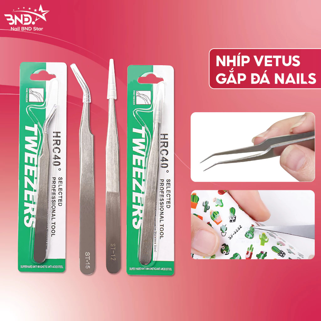 Nhíp gắp đá nail Vetus thép không gỉ – Nhíp nail cao cấp chuyên dụng cho dân làm móng Nailbnd