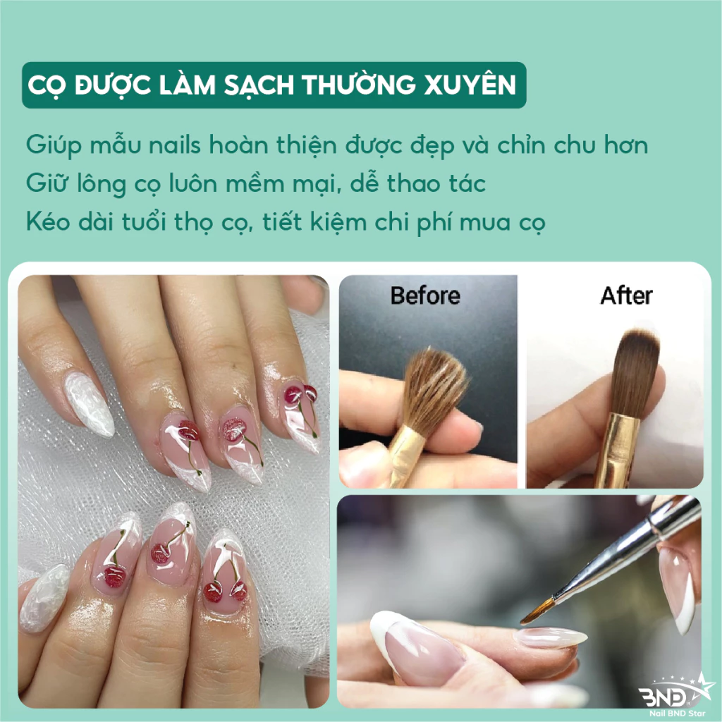 Một chiếc cọ bẩn có thể làm ô nhiễm sơn, gel, bột, giảm tuổi thọ của cọ và làm ảnh hưởng rất lớn đến chất lượng mẫu nails làm cho khách. Bằng cách làm sạch cọ thường xuyên, sẽ giữ cho lông cọ luôn mềm mại, dễ sử dụng và kéo dài tuổi thọ của cọ, giúp thợ nails tiết kiệm được nhiều chi phí mua cọ mới.