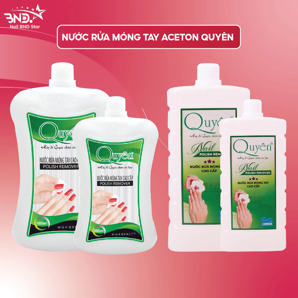 Nước rửa móng tay aceton Quyên – Nước rửa loại tốt tẩy mạnh, sạch nhanh, mùi dễ chịu (500ml và 1000ml)