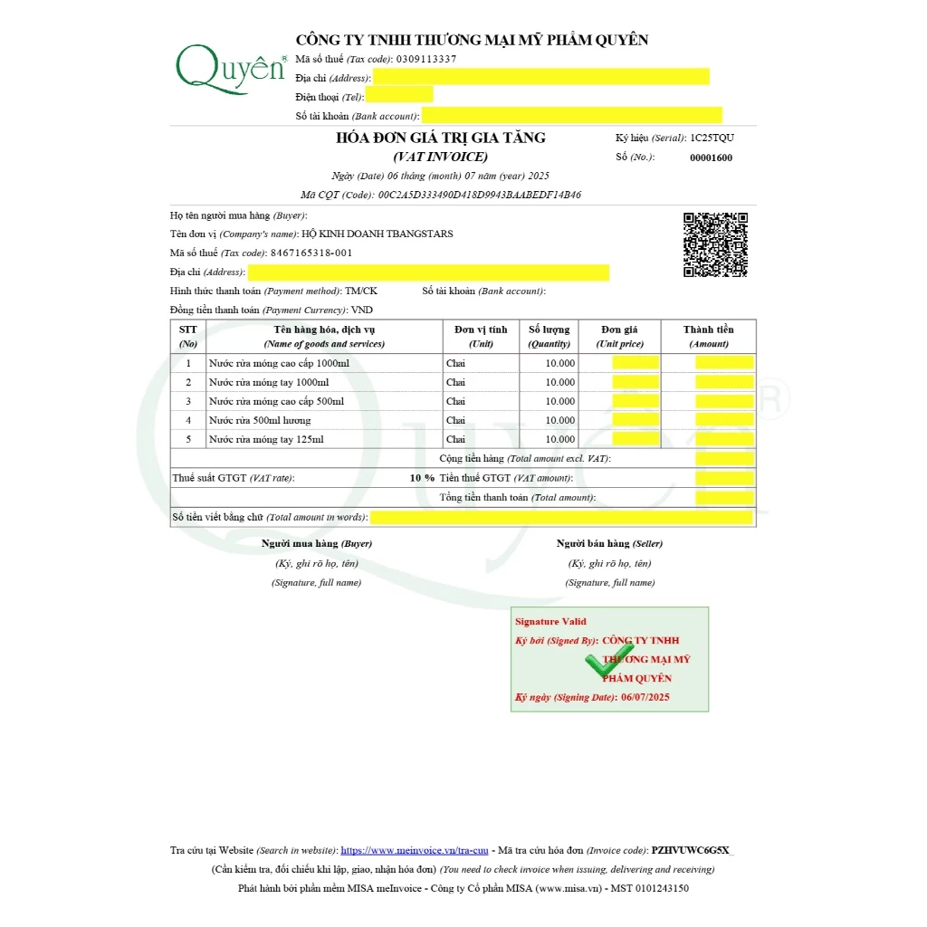 – Đơn vị sản xuất: Công ty TNHH Thương Mại Mỹ Phẩm Quyên