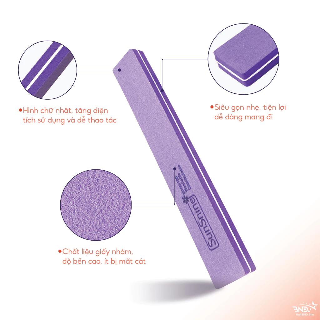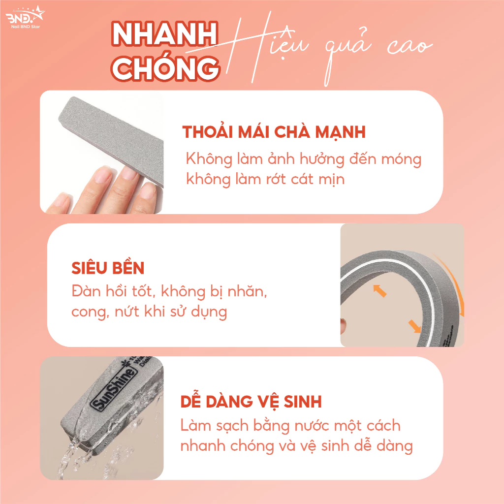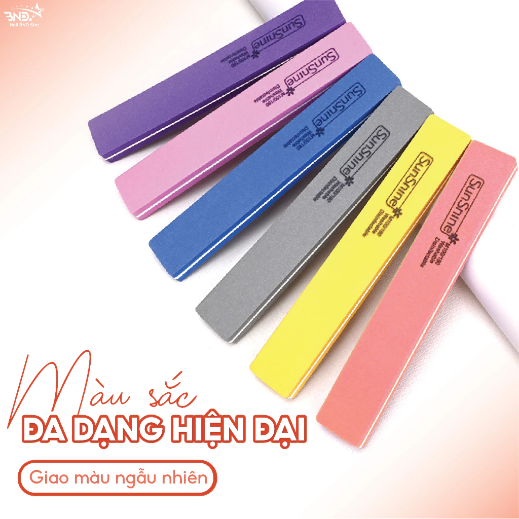 Phao dũa mịn Sunshine chà móng nhiều màu sắc hình chữ nhật dễ cầm chuyên dụng cho dân làm móng (giao màu ngẫu nhiên)