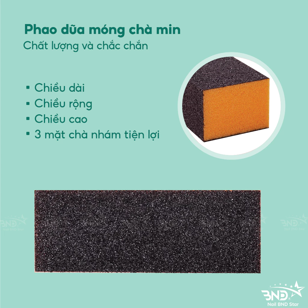 Phao dũa móng chà mịn (buffer cam) được thiết kế với 3 mặt chà nhám, sử dụng lâu dài, lâu hỏng, tiết kiệm được nhiều chi phí cho tiệm nails.