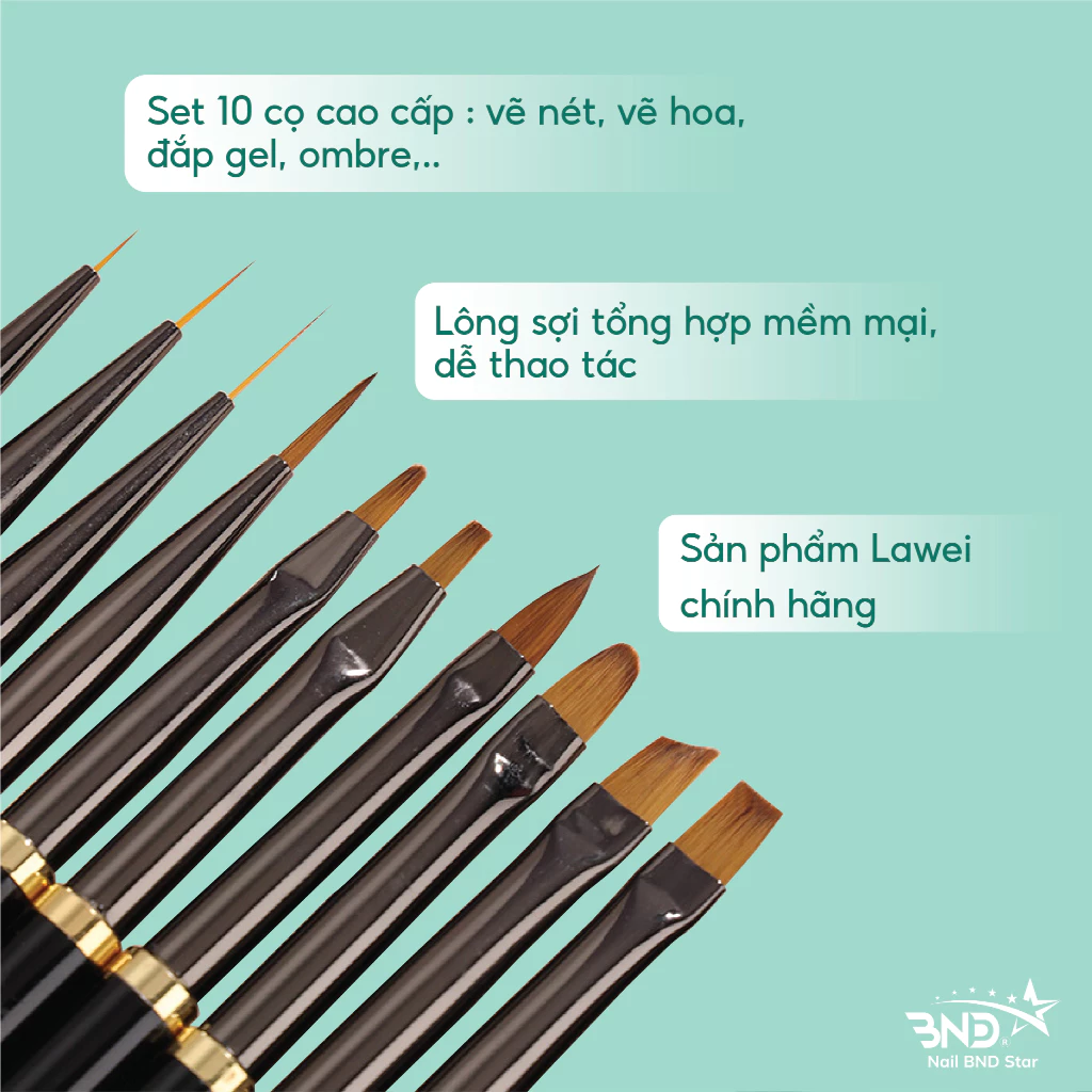 Set 10 cọ nail Lawei _ Cọ vẽ móng chuyên dụng làm nail