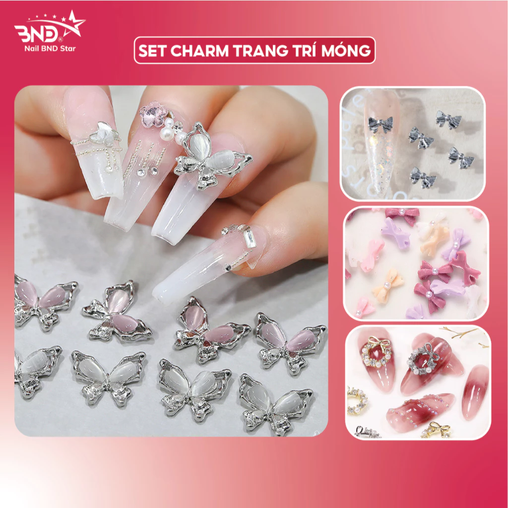 Phụ kiện gắn móng hình nơ, bướm làm nail hot trend, tổng hợp những mẫu charm, phụ kiện gắn móng được nhiều khách hàng ưa thích với đa dạng mẫu mã, thiết kế. Giúp khách hàng dễ dàng lựa chọn phụ kiện phù hợp với sở thích và phong cách riêng.