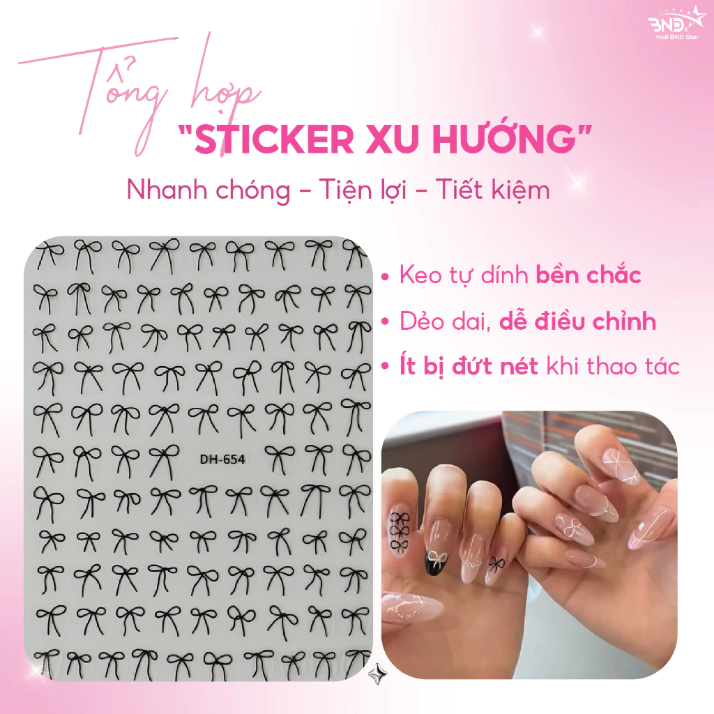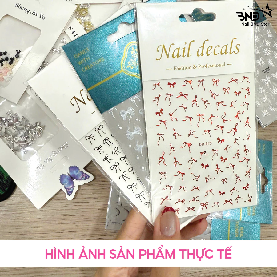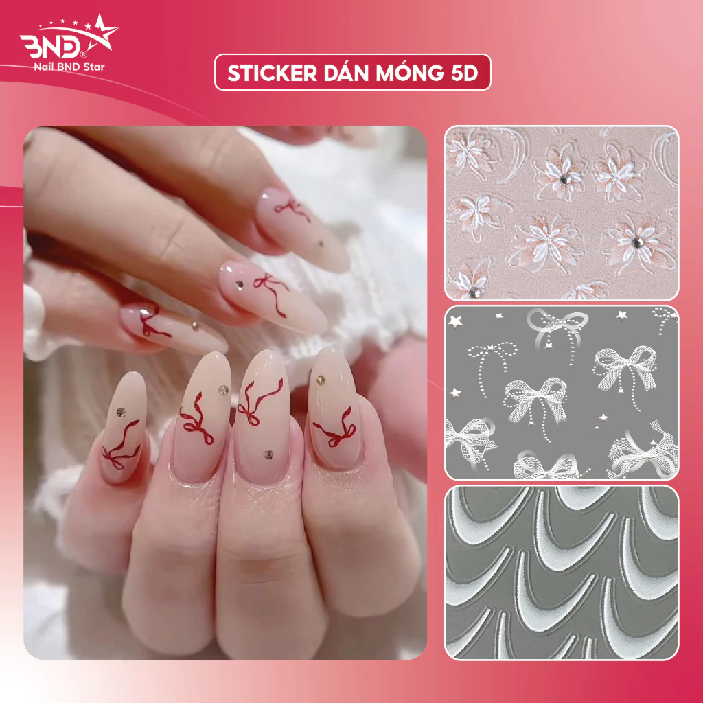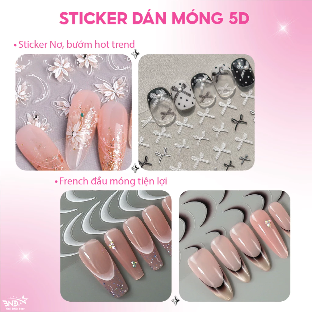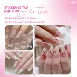 Sticker 5D dán móng tay – Miếng dán trang trí móng đa dạng hình nơ, bướm, french đầu móng (lẻ 1 tấm)