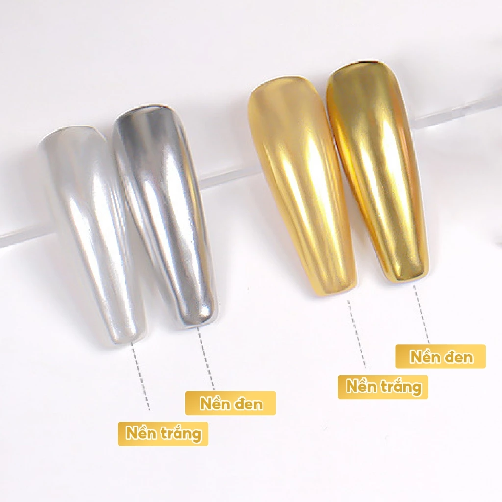 Tráng gương kim loại vàng, bạc – Bột chà tráng gương nail màu vàng, bạc trang trí móng (lẻ hũ)