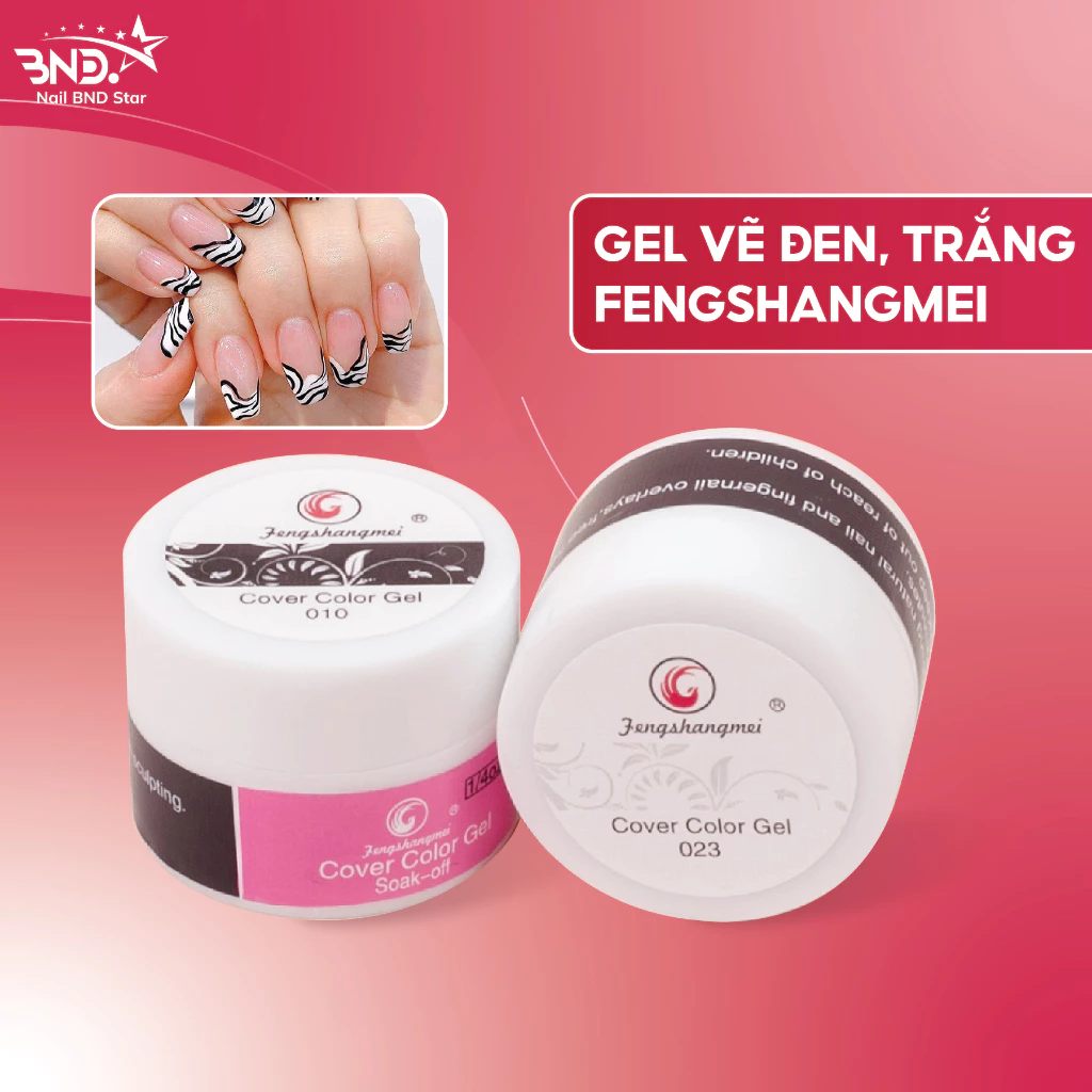 Gel vẽ đen, trắng Fengshangmei chính hãng _ Gel vẽ móng nổi chất đậm đặc chuyên dụng làm nail lẻ hũ