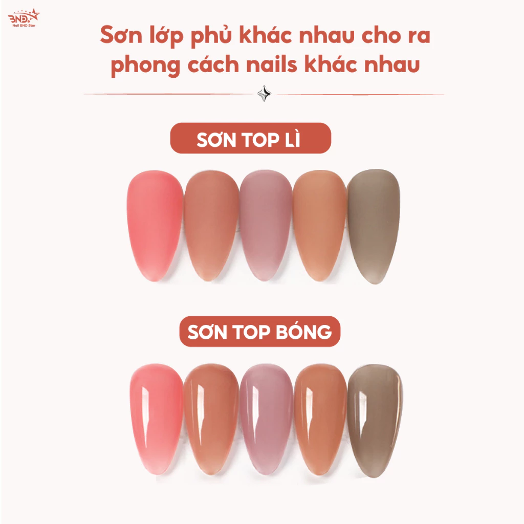 Có thể thực hiện từ 2 – 3 lớp sơn để đạt độ đậm nhạt mong muốn, hoặc sơn lớn Top (bóng, lì) tùy thích. Tạo được nhiều phong cách nails khác nhau theo sở thích mà không lo lớp sơn bị quá dày hay cộm. Độ bền màu sơn từ 30 – 40 ngày.