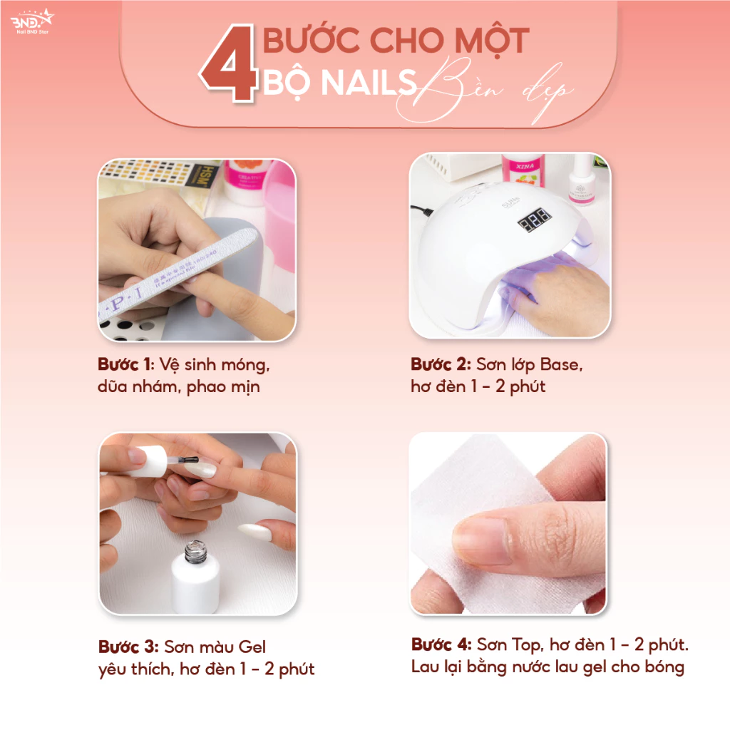 – Sơn gel 2 lớp lần lượt và hơ đèn 60s