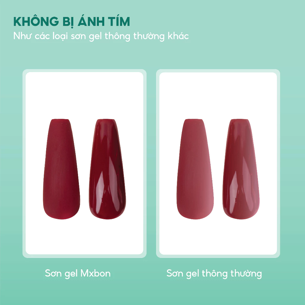 Sơn gel Mxbon tone đỏ không bị ánh tím và base hồng như các loại sơn gel thông thường