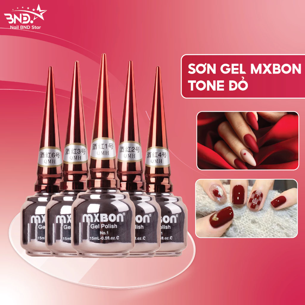 Sơn gel Mxbon tone đỏ 6 màu – Sơn móng tay gel đậm đặc lên màu chuẩn (lẻ 1 màu)