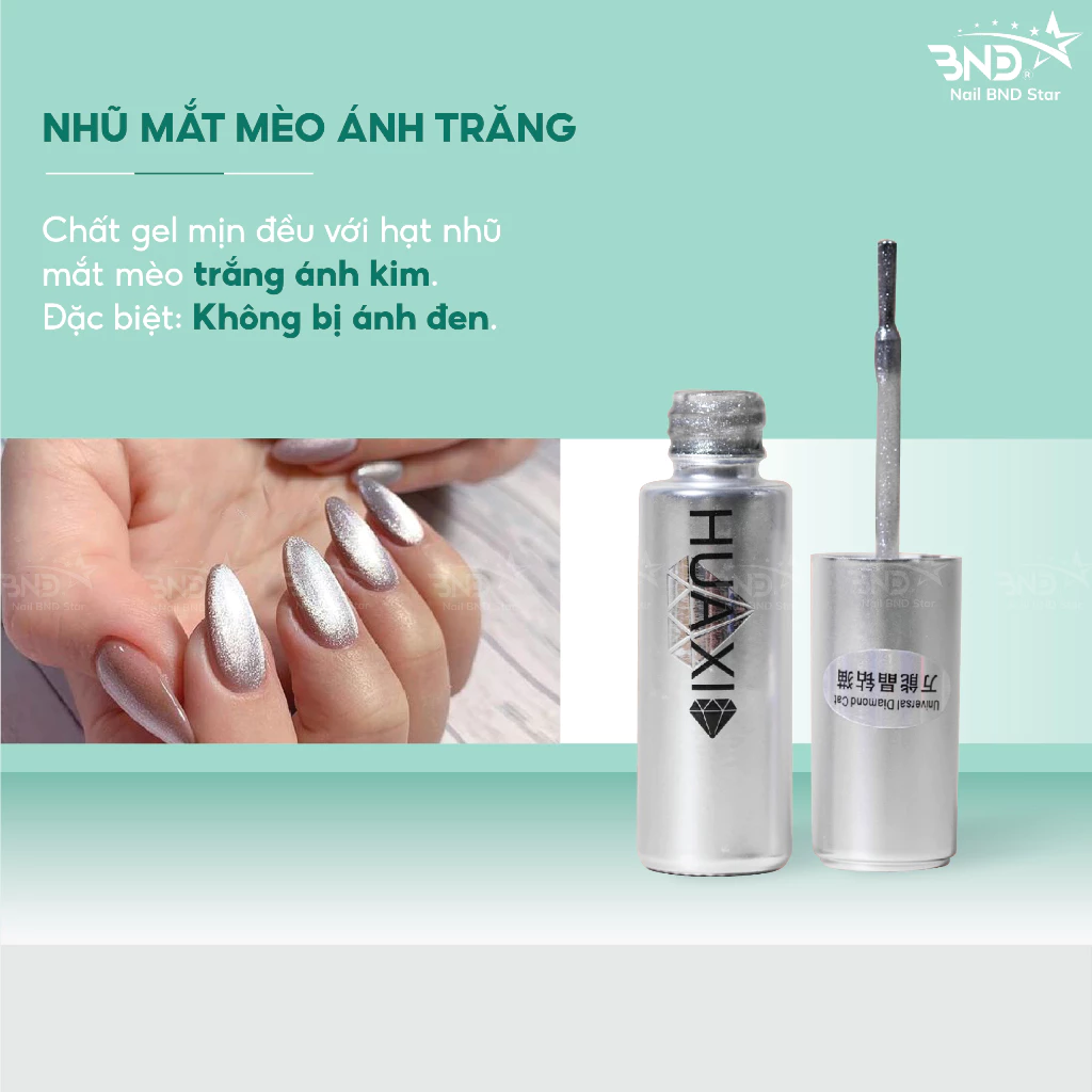 Sơn gel mắt mèo ánh trăng Huaxi là sản phẩm mới với chất gel cải tiến. Nhũ mắt mèo ánh trăng có chất gel mịn đều từ các hạt nhũ mắt mèo màu trắng ánh kim. Đặc biệt, khi lên móng không hề bị ám đen mà còn giúp bộ móng trở nên nổi bật khi kết hợp với nền gel thạch.