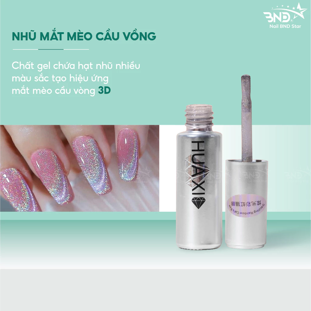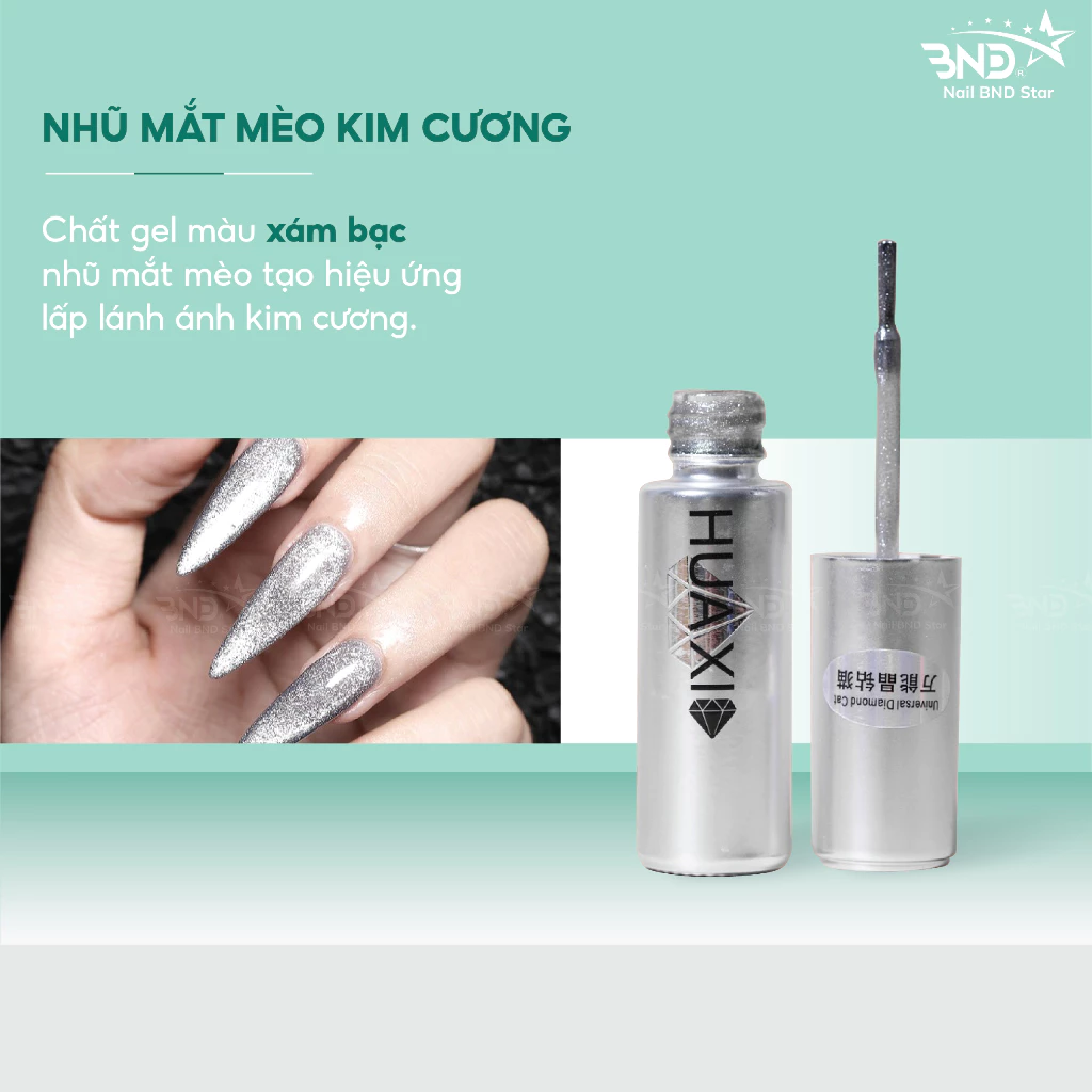 Top mắt mèo kim cương Huaxi 9D có chất gel đậm đặc, sơn 1_2 lớp lên màu chuẩn. Sản phẩm tạo hiệu ứng sáng lấp lánh khi được hơ nam châm.